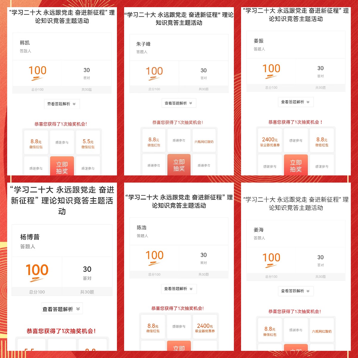 本次活動(dòng)采用線上微信知識(shí)競(jìng)答形式,試題緊扣黨的二十大報(bào)告、新黨章等內(nèi)容,設(shè)置單選題、多選題兩種題型,活動(dòng)主題突出、內(nèi)容豐富,是對(duì)黨的二十大精神學(xué)習(xí)成果的一次檢視,得到了黨員、積極分子的廣泛關(guān)注和參與。